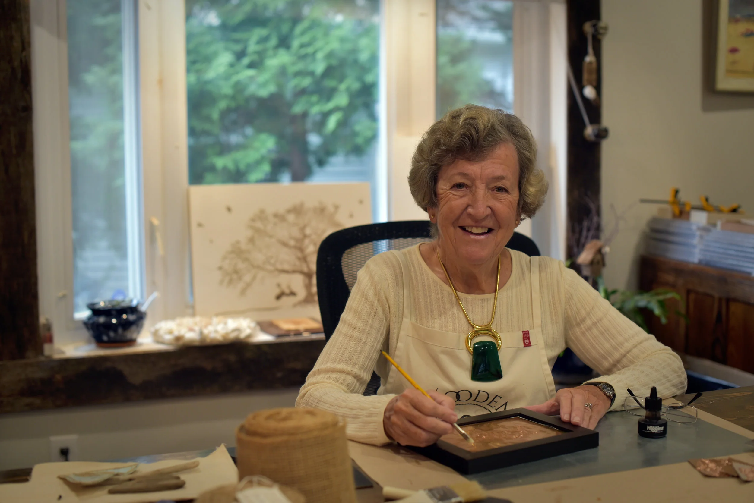 Now retired, she spends her time beachcombing along the Atlantic coast and creating unique works using her finds and reclaimed wood, and making beautiful representations of marine critters in tooled copper.